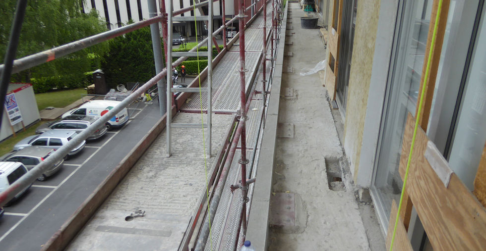 Rénovation des terrasses et isolation des façades arrière et latérales de l'immeuble.
